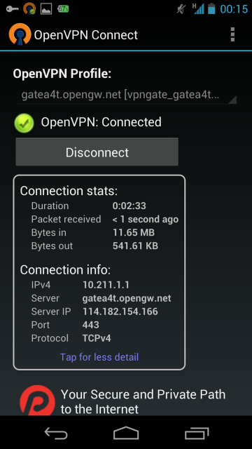 ここでは、iOS に OpenVPN Technologies, Inc. 社の OpenVPN クライアントの Android 版である「OpenVPN Connect」をインストールして VPN Gate 公開 VPN 中継サーバーへ接続する方法を説明します。